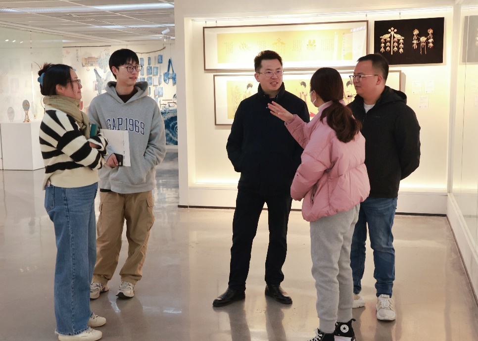 12月12日上午,浙江雅佳豪拍賣有限公司總經(jīng)理喻天龍一行來到手工藝學(xué)院參觀了“匠心守藝”非遺創(chuàng)意成果展,并進(jìn)行交流。
