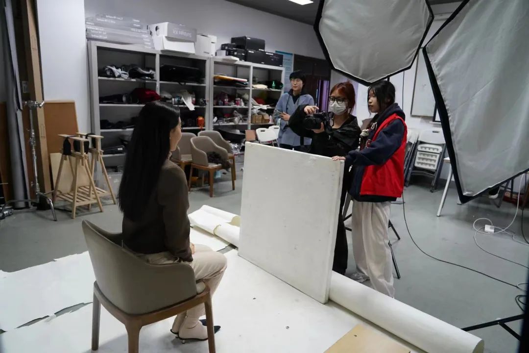 拍攝前,身著紅色志愿服的同學(xué)們熱情接待了“特別模特”,攝影過程中,耐心引導(dǎo)著模特們,以求在春日艷陽里,用相機(jī)為她們定格最美身影,在浙藝的攝影棚里,同學(xué)們布好燈光,舉起相機(jī),“咔嚓——”拍攝下一張張精美的照片。