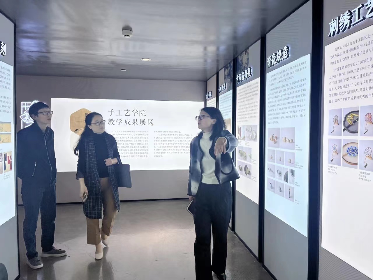 手工藝學(xué)院黨總支書記鐘黎介紹了學(xué)院課程體系、學(xué)生優(yōu)秀作品以及人才培養(yǎng)方案等內(nèi)容,學(xué)院領(lǐng)導(dǎo)班子陪同參觀“匠心守藝”非遺創(chuàng)意成果展,希望與浙江旅游職業(yè)學(xué)院旅行服務(wù)與管理學(xué)院加強(qiáng)院際交流與合作,共同探索學(xué)院發(fā)展和人才培養(yǎng)新路徑。