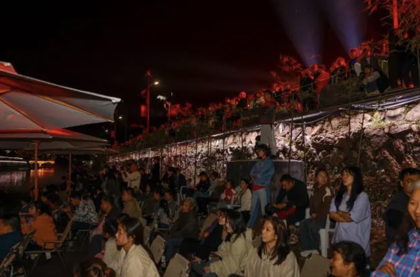 當(dāng)晚的首場(chǎng)演出吸引了近千名游客和附近的村民觀看。聞?dòng)嵦氐仳?qū)車幾十公里到下姜村觀看演出的楊鵬飛在演出結(jié)束后十分感慨,表示要回去帶上父母一起來(lái)看,“真的很感動(dòng),下姜現(xiàn)在的發(fā)展是越來(lái)越好了,和以前比是天翻地覆,下姜了不起。”