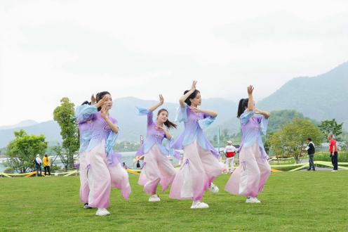 為增強學前教育專業(yè)學生校外實踐能力,4月29日,學前教育專業(yè)藝術(shù)進階(舞蹈方向)師生赴銅鑒湖參與校企合作項目之一的杭州市國際風箏節(jié)開幕式舞蹈演出。