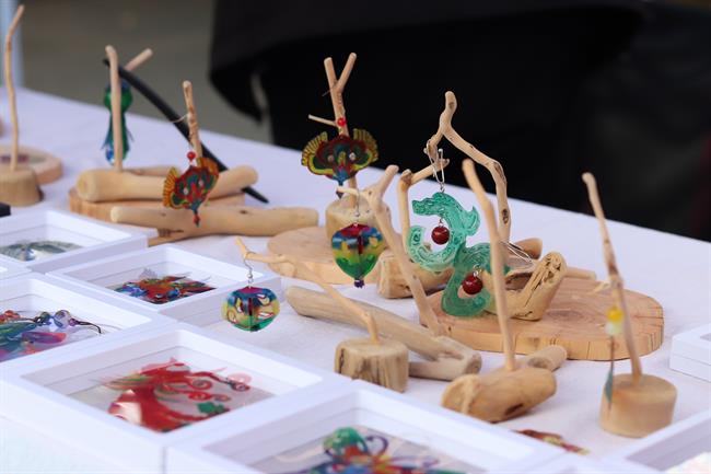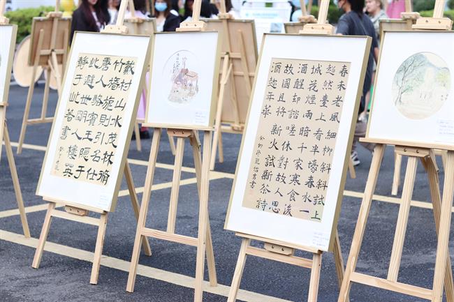 活動(dòng)現(xiàn)場(chǎng)人頭攢動(dòng),一個(gè)個(gè)攤位上的文創(chuàng)產(chǎn)品琳瑯滿目。中國(guó)傳統(tǒng)書(shū)畫(huà)躍身于燈籠、香薰蠟燭、書(shū)簽、紙傘、紙扇、掛件之上,與創(chuàng)意產(chǎn)品完美結(jié)合,精致美觀又充滿文化氣息,引得現(xiàn)場(chǎng)觀眾頻頻駐足,爭(zhēng)相購(gòu)買(mǎi)。大家在一件件扇面和書(shū)簽中體悟融入生活中的藝術(shù),從火漆印章和香薰蠟燭中感受傳統(tǒng)文化的新魅力。值得一提的是,師生們還為戴村鎮(zhèn)大石蓋村開(kāi)發(fā)了系列文創(chuàng)產(chǎn)品,也受到一致好評(píng)。