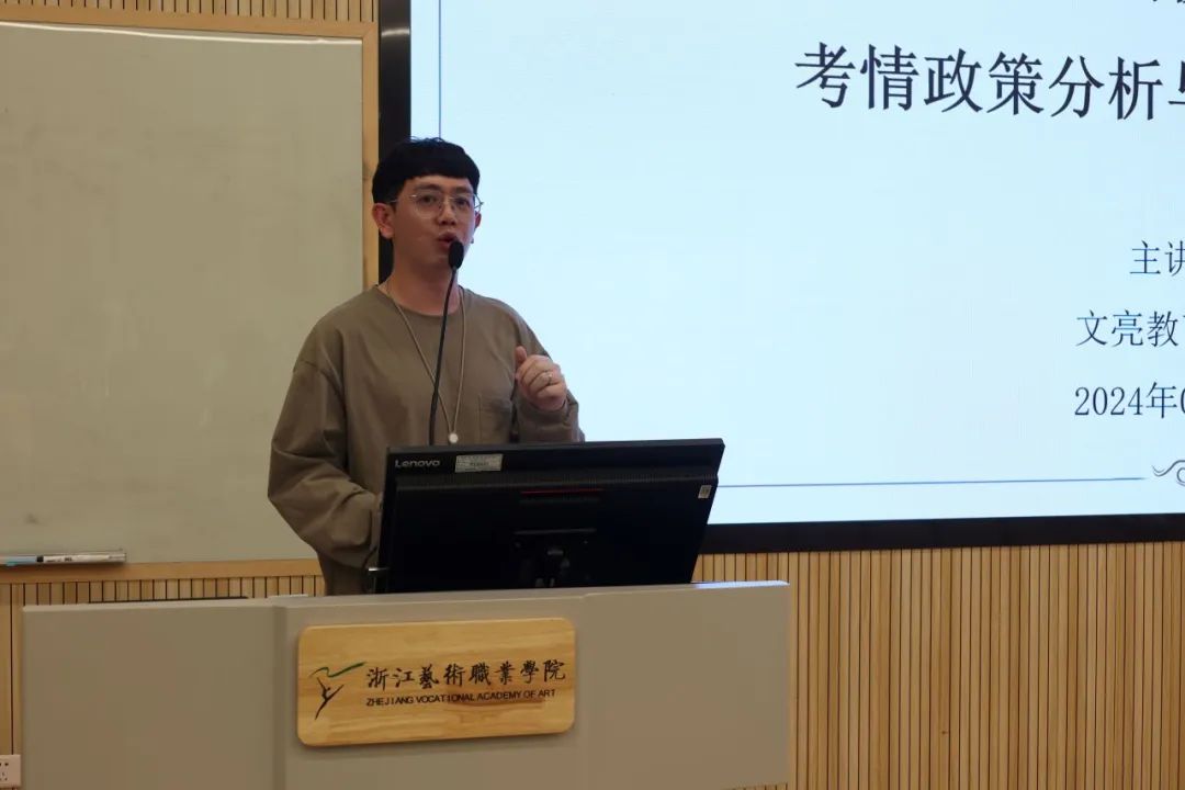 戴振凱對近年來普通高校專升本考情政策進行詳細解讀。他介紹了浙江全日制專升本報名和考試時間安排,分析了專升本考試趨勢,并針對我院各專業(yè)可報考的學校、專業(yè)及往屆畢業(yè)生考試情況作具體分析。