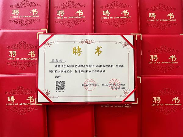 經(jīng)各二級(jí)學(xué)院的精心選拔和推薦,產(chǎn)學(xué)合作處審核,全校公示,最終確定了新一屆校友聯(lián)絡(luò)員的名單,并于5月正式印發(fā)了《關(guān)于公布浙江藝術(shù)職業(yè)學(xué)院2024屆校友班級(jí)聯(lián)絡(luò)員的通知》。此次共有43名優(yōu)秀的應(yīng)屆畢業(yè)生脫穎而出,成為新一任校友聯(lián)絡(luò)員,他們將肩負(fù)起連接校友與學(xué)校的重任。產(chǎn)學(xué)合作處與浙藝校友會(huì)共同精心設(shè)計(jì)了校友聯(lián)絡(luò)員聘書及精美的紀(jì)念品。在2024屆畢業(yè)典禮上,學(xué)校隆重舉行了新一屆校友聯(lián)絡(luò)員的聘任儀式。這一儀式不僅是對(duì)他們過(guò)去努力的肯定,更是對(duì)他們未來(lái)工作的期許。