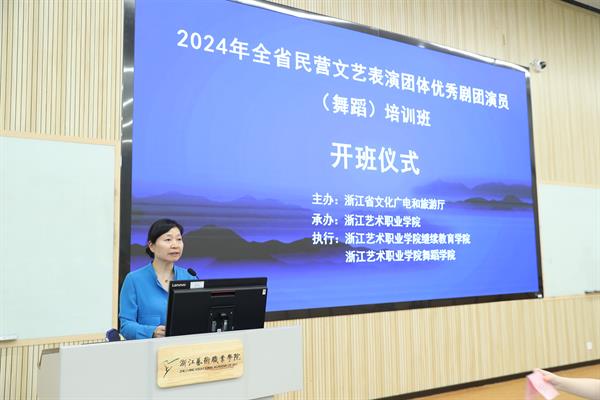 7月4日,由浙江省文化廣電和旅游廳主辦、浙江藝術(shù)職業(yè)學(xué)院承辦、浙藝舞蹈學(xué)院和繼續(xù)教育學(xué)院共同執(zhí)行承辦的全省民營文藝表演團(tuán)體優(yōu)秀劇團(tuán)演員(舞蹈)培訓(xùn)班在我校開班,來自全省各地民營文藝表演團(tuán)體的40名學(xué)員參加培訓(xùn)。校黨委委員、副校長劉楊,繼續(xù)教育學(xué)院院長吳灌紅出席開班儀式。