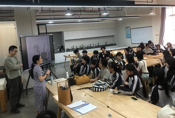 在展覽現(xiàn)場,造型基礎(chǔ)(附中美術(shù))教研室主任沈玉佩現(xiàn)場為學(xué)生講解水印木刻作品。沈玉佩細致入微的講解和循循善誘的引導(dǎo),深深吸引了同學(xué)們的注意力,同學(xué)們在直觀感受中深刻體會到了水印木刻的獨特魅力和藝術(shù)家的非凡匠心。