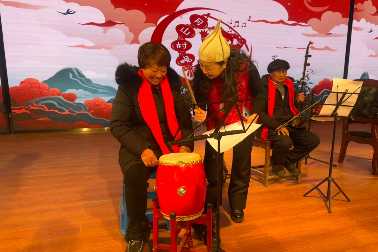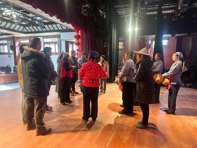 老師們認(rèn)真觀看了《金蛇狂舞》《采茶舞曲》等節(jié)目的排練,從專業(yè)視角出發(fā),對(duì)節(jié)目中的音樂(lè)編排、器樂(lè)演奏、舞臺(tái)表演等各個(gè)方面,進(jìn)行了細(xì)致入微的指導(dǎo),并與春晚骨干成員展開(kāi)深入交流。章蔓麗老師感慨道,17年前她初次到訪月山村,便被月山春晚中村民們自編自導(dǎo)自演的創(chuàng)意與熱情所深深打動(dòng)。村民們利用農(nóng)閑時(shí)光,積極投身文藝活動(dòng),尤其是保留節(jié)目《農(nóng)活秀》,充分彰顯了藝術(shù)源于生活的真諦。她還承諾,后續(xù)將帶領(lǐng)支部黨員教師持續(xù)關(guān)注月山村,深入采風(fēng),與村民們攜手挖掘月山村的歷史文化與民俗風(fēng)情,并以此為靈感創(chuàng)作作品,融入到節(jié)目之中,讓月山春晚更具獨(dú)特魅力與地方特色。