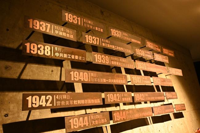 踏入紀(jì)念館,莊嚴(yán)肅穆的氛圍撲面而來。師生們在展廳中緩緩前行,從淞滬會戰(zhàn)的硝煙彌漫,到浙江本土抗日力量的頑強堅守,每一個歷史場景的呈現(xiàn),都像是一記重錘,叩擊著大家的心靈。在受降儀式的還原場景前,眾人久久佇立,見證那來之不易的勝利時刻,而這份正義的實現(xiàn),離不開無數(shù)仁人志士前赴后繼的奮斗與犧牲。