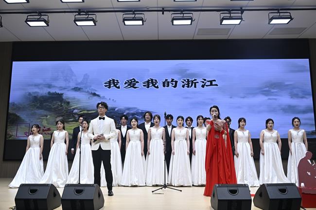 第三篇章“使命之約——強(qiáng)國有我新征程”展望了新時代青年的使命擔(dān)當(dāng),朗誦《誓言錚錚心向黨》表達(dá)青年愛黨強(qiáng)國之志,情景劇《龍泉劍瓷》以文化傳承創(chuàng)新助力共同富裕,微宣講《“鉗”住新密碼 “義”起話共富》以未來鄉(xiāng)鎮(zhèn)文化員的視角解鎖鄉(xiāng)村振興的新密碼,大合唱《我和我的浙江》將活動推向高潮,抒發(fā)了浙藝人對浙江的熱愛與自豪。