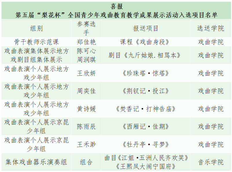 我校2項(xiàng)目入選第五屆“梨花杯”全國(guó)青少年戲曲教育教學(xué)成果展示活動(dòng)優(yōu)秀成果