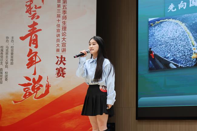 手工藝學院黨總支的金語涵結合浙江象山的變革,生動解讀了“建設美麗中國”的重要內(nèi)涵。舞蹈學院黨總支的姚璐結合中國傳統(tǒng)舞蹈《舞韻東方》,傳達了“以舞為舟,載浙藝風華渡重洋”的理想。手工藝學院黨總支的林維業(yè)從馬來西亞的多元文化切入,傳達“做傳統(tǒng)的守護人,當創(chuàng)新的擺渡者”的信念。戲劇影視學院黨總支的何穎、陳潔、蘇昱蒙呼吁大家關注、關心殘疾人,讓每個生命都被“看見”。戲曲學院黨總支的李運靖結合自己在美國賓漢頓大學戲曲孔子學院的志愿工作經(jīng)歷,以戲曲為媒,弘揚中華優(yōu)秀傳統(tǒng)文化。演藝與教育學院黨總支的俞晶晶、王柳詞以圖文并茂的形式生動, 再現(xiàn)了仙居、武義文化推介官合力推介地方文旅的場景。馬克思主義學院直屬黨支部的曹佳藝從“政治導師”“學習導師”“人生導師”三種角色入手,解讀了“用思政匠心 育時代新人”的深刻內(nèi)涵。戲曲學院黨總支的楊茜講述了三代戲曲人薪火相傳的成長故事。手工藝學院黨總支的楊之圣從自身經(jīng)歷出發(fā),傳達了“守衛(wèi)物質(zhì)家園,守護精神原鄉(xiāng)”的初心。基礎部附中聯(lián)合黨總支的項天歌呼吁“以青春之名,赴時代之約”,號召浙藝學子在浙藝精神中尋找成長坐標。演藝與教育學院黨總支的鄭佳妮、陳姝言結合學校發(fā)展歷程,將浙藝人以藝術為舟、以初心為帆的故事娓娓道來。設計學院黨總支的朱程誠結合浙藝臺前幕后的故事,歌頌了浙藝人的匠心與創(chuàng)新。舞蹈學院黨總支的葉瀅瀅結合一段與信仰有關的舞蹈旅程,表達與信仰共舞、與祖國同頻的使命。舞蹈學院黨總支的譚雨旋從一名舞蹈老師的“浙藝答卷”入手,以自身經(jīng)歷講述托舉與傳承的意義。戲劇影視學院黨總支的趙澤杭從共和國的第一聲播講切入,呼吁浙藝學子“用聲音傳遞信仰,以話筒賡續(xù)榮光”。演藝與教育學院黨總支的王楚瑤從義烏市隴頭朱村“稻蝦輪作”項目切入,講述了鄉(xiāng)鎮(zhèn)文化員“鉗”住新密碼、“義”起話共富的新時代故事。音樂學院黨總支的宋珊瑚從《黃河大合唱》《黃河頌》兩首歌切入,呼吁浙藝學子延續(xù)黃河血脈,傳承浙藝精神。演藝與教育學院黨總支的林芷伊講述了溫州鼓詞蘊含在鄉(xiāng)音里的文化傳承與堅守。設計學院黨總支的何晶分別從“溯源”“傳承”“奮進”三個關鍵詞入手,呼吁浙藝學子應傳承浙藝精神,勇?lián)鷷r代使命。音樂學院黨總支的沈昀從維護世界和平、傳承中華優(yōu)秀傳統(tǒng)文化等方面解讀了中國話語的重要性,倡導“讓世界聽見中國的聲音”。