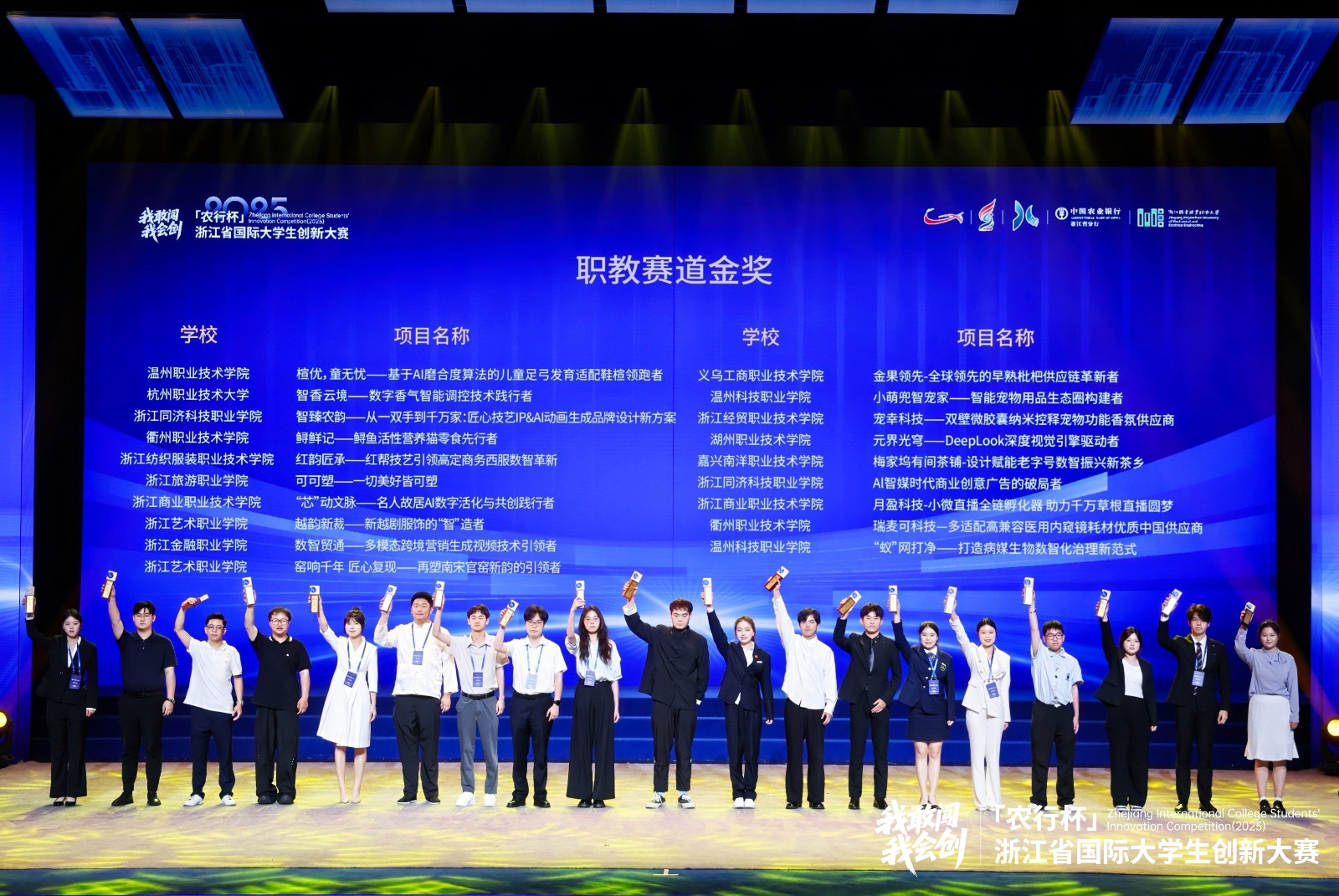 7月13日下午,“農(nóng)行杯”浙江省國際大學生創(chuàng)新大賽(2025)閉幕式暨頒獎典禮在浙江實驗藝術(shù)劇場舉行。我校榮獲金獎4項、銀獎3項,金獎數(shù)位列全省高職院校前3,是全省唯一2個項目入圍五強晉級賽的高職院校。