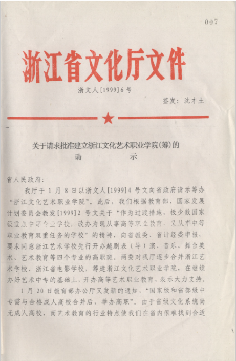 關(guān)于請求批準建立浙江文化藝術(shù)職業(yè)學(xué)院(籌)請示