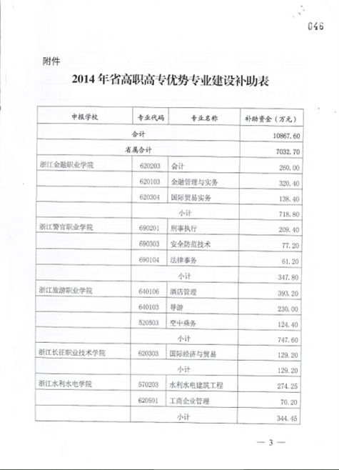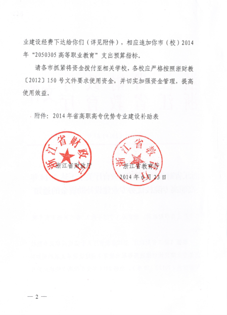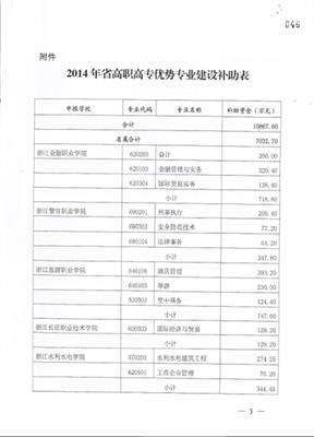 浙江省財政廳 浙江省教育廳關(guān)于發(fā)布2014年高職高專院校優(yōu)勢專業(yè)建設(shè)補助資金的通知