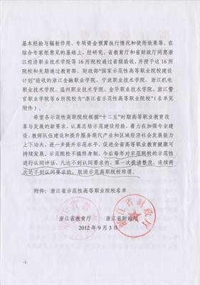 2012年,學(xué)校通過檢查驗收,被授予“浙江省示范性高等職業(yè)院校”;群舞《畬家女兒拍》參加第十屆全國“桃李杯”舞蹈比賽獲群舞一等獎。