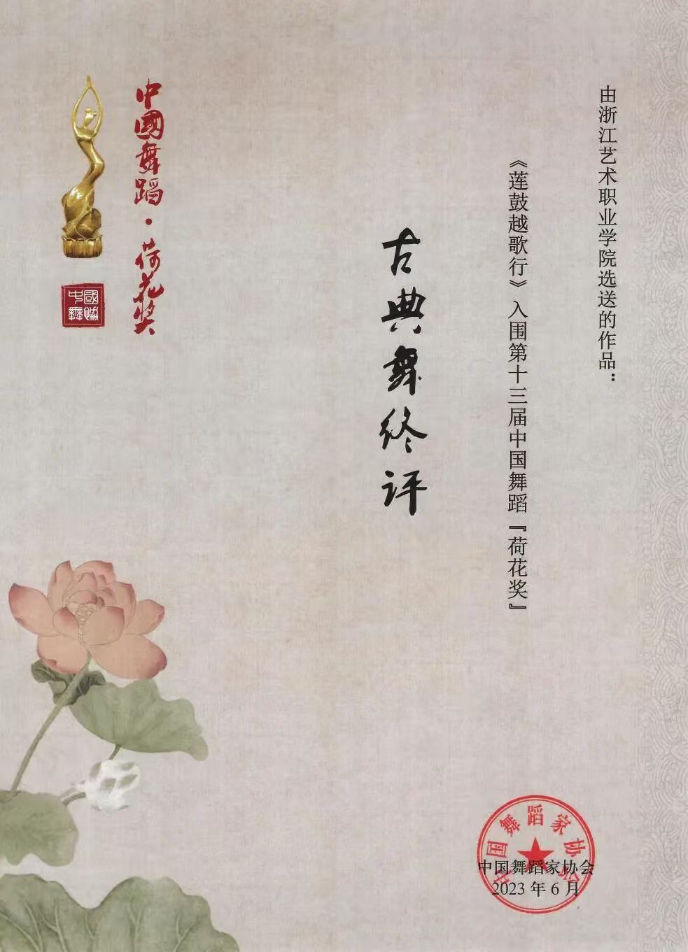 原創(chuàng)作品《蓮鼓越歌行》入圍第十三屆中國舞蹈“荷花獎(jiǎng)”古典舞終評(píng)