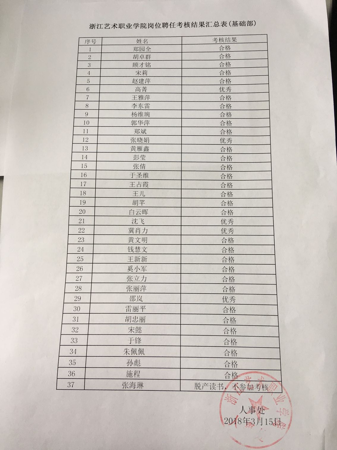 浙江藝術(shù)職業(yè)學(xué)院崗位聘任考核結(jié)果匯總表(基礎(chǔ)部)