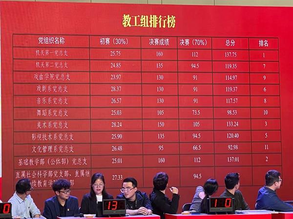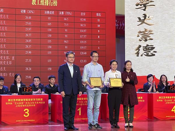 4月23日下午,黨史知識(shí)競(jìng)賽決賽在音樂(lè)廳舉行,基礎(chǔ)教學(xué)部黨總支選派沈飛、王婧瑤和魏晶晶等3名黨員參加。教工第一、第二黨支部全體黨員在現(xiàn)場(chǎng)觀摩學(xué)習(xí)。經(jīng)過(guò)三名黨員的奮力拼搏,決賽總分第二名。綜合初賽及決賽成績(jī),基礎(chǔ)教學(xué)部黨總支最終獲得一等獎(jiǎng)的優(yōu)異成績(jī)。
