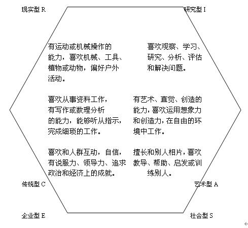 霍蘭德認(rèn)為個人的興趣組型即是人格組型,通過職業(yè)興趣測試了解個人的興趣類型。