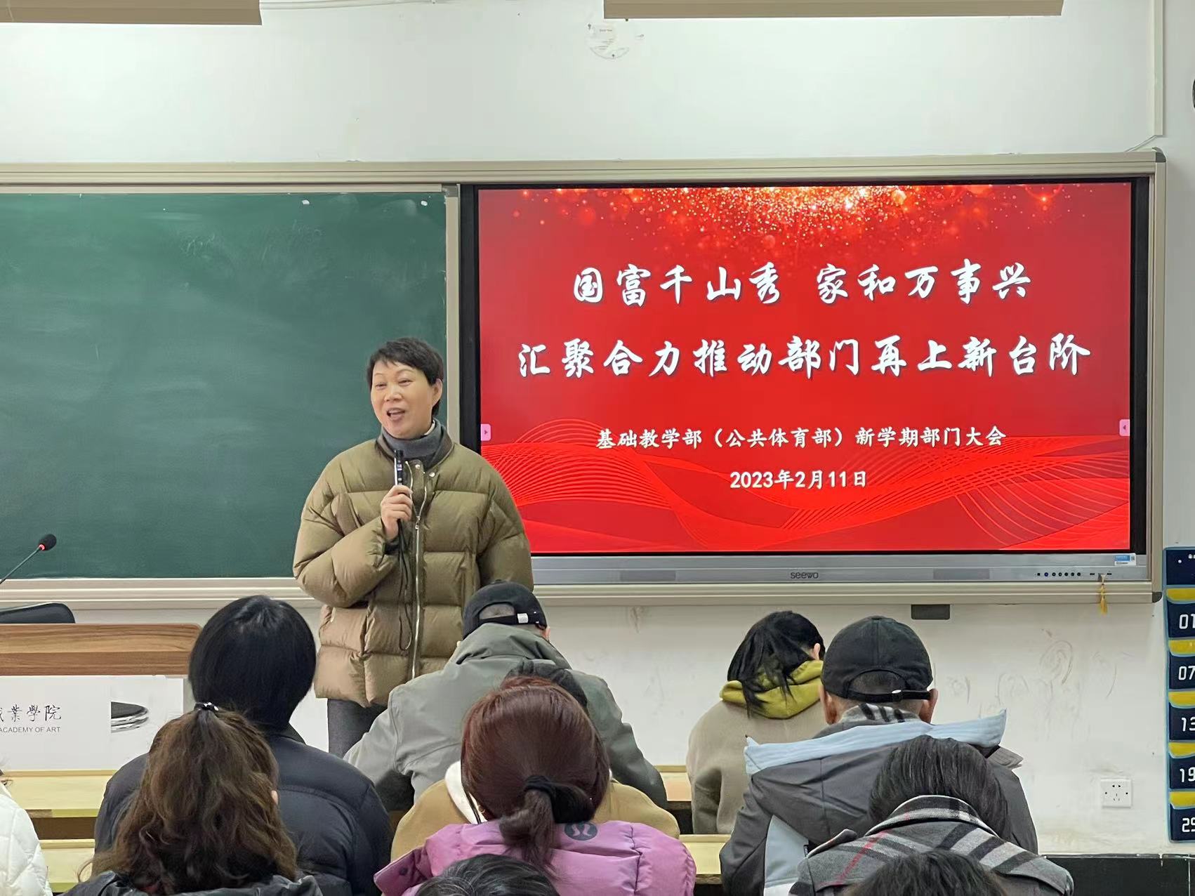 本次會(huì)議明確了新學(xué)期的工作要求與工作方法,調(diào)動(dòng)了大家的工作熱情與工作信心,進(jìn)一步提升了凝聚力,基礎(chǔ)部(公體部)教師將以飽滿的姿態(tài)和昂揚(yáng)的精神迎接新學(xué)期的工作。