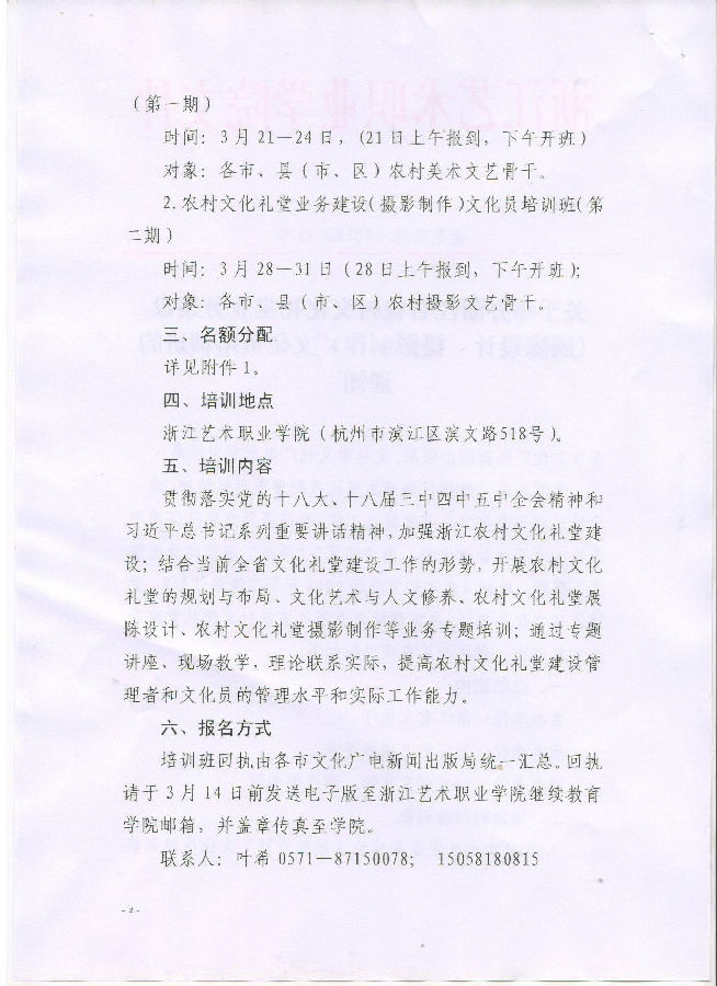 關(guān)于舉辦浙江省農(nóng)村文化禮堂業(yè)務(wù)建設(shè) (展陳設(shè)計(jì)、攝影制作)文化員培訓(xùn)班的 通知