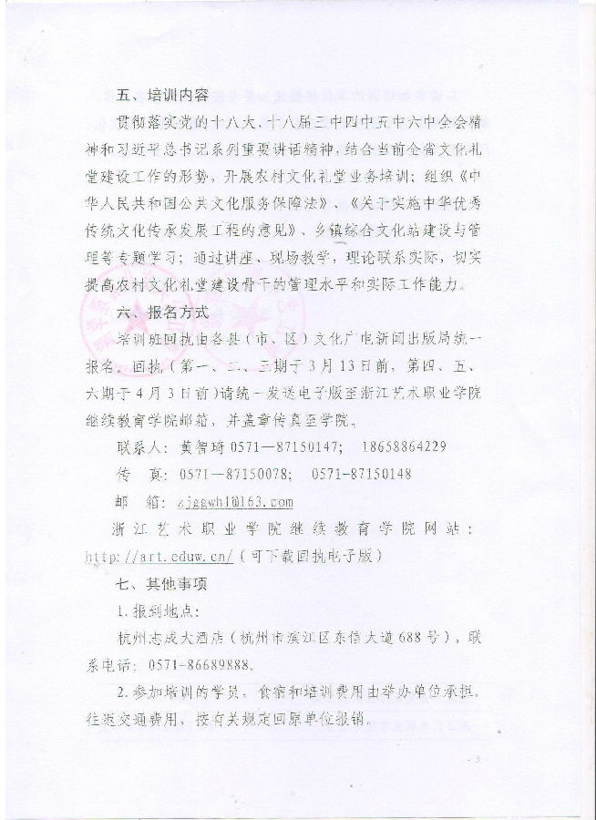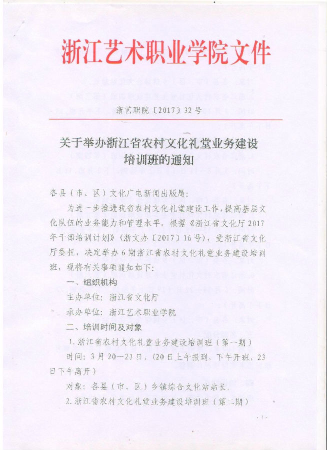關(guān)于舉辦浙江省農(nóng)村文化禮堂業(yè)務(wù)建設(shè)培訓(xùn)班的通知