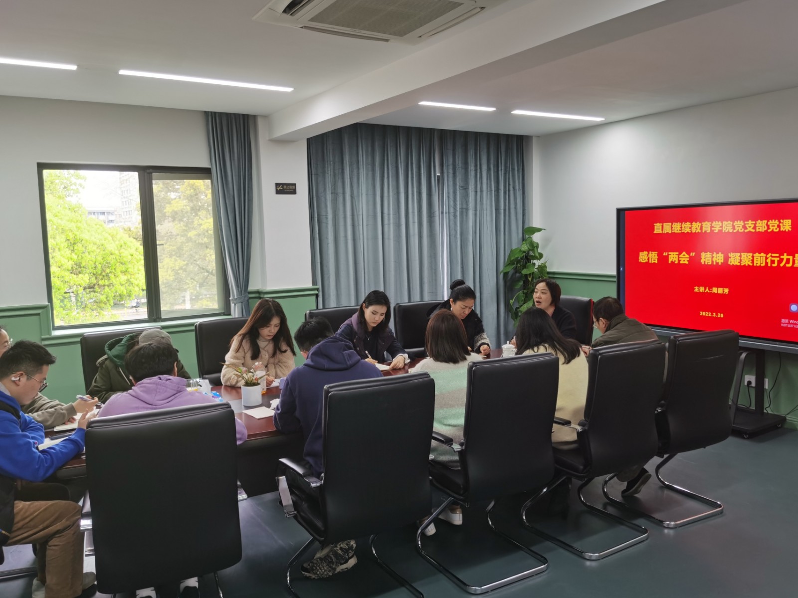 為深入貫徹學(xué)習(xí)2022年全國“兩會”會議精神,正確領(lǐng)悟習(xí)近平總書記重要講話精神,切實增強全體教職工責(zé)任感、使命感和緊迫感,3月25日下午,直屬繼續(xù)教育學(xué)院黨支部聚焦兩會精神,組織黨員干部和全體教職工開展了兩會專題學(xué)習(xí)和主題黨課,并進行了兩會知識競賽活動。