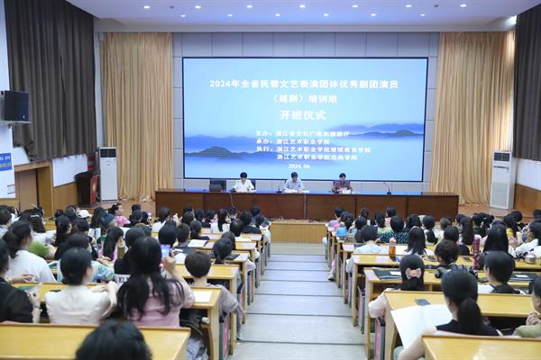 6月27日下午,由浙江省文化廣電和旅游廳主辦、浙江藝術(shù)職業(yè)學(xué)院承辦、浙藝戲曲學(xué)院和繼續(xù)教育學(xué)院共同執(zhí)行承辦的全省民營文藝表演團(tuán)體優(yōu)秀劇團(tuán)演員(越劇)培訓(xùn)班(第一、二期)在我校開班,來自全省各地民營文藝表演團(tuán)體的近200名越劇演員(花旦、小生)參加培訓(xùn)。我校黨委委員、副校長徐芳,繼續(xù)教育學(xué)院院長吳灌紅、戲曲學(xué)院副院長呂靈芝出席開班儀式。儀式由吳灌紅主持。