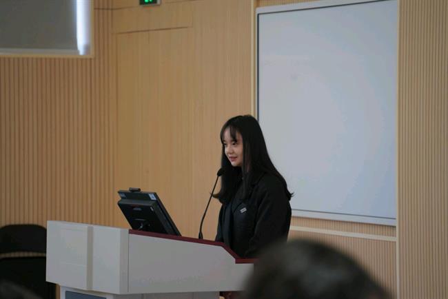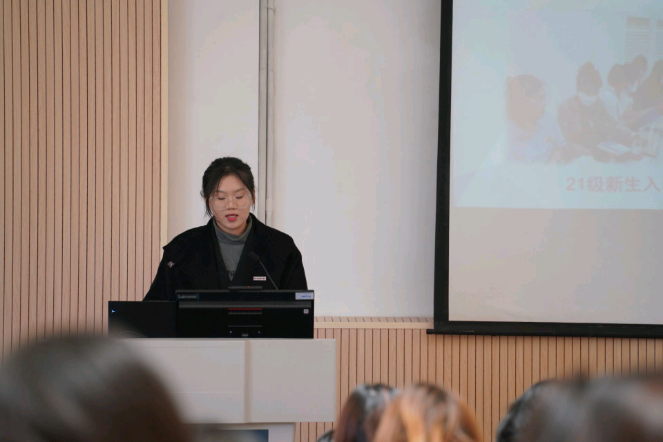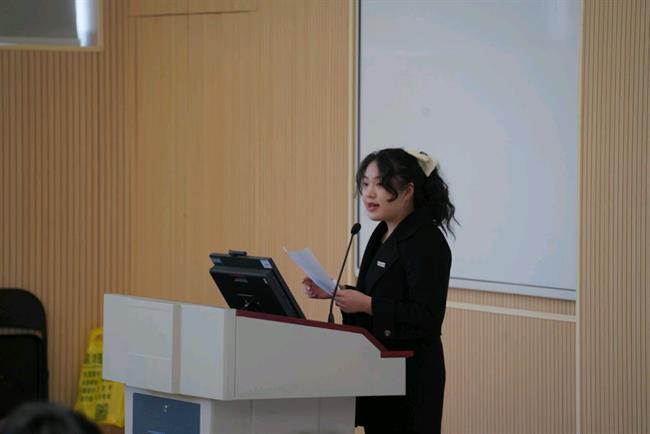 系第十九屆學(xué)生會(huì)執(zhí)行主席胡凱欣匯報(bào)系第十九屆學(xué)生會(huì)工作報(bào)告。