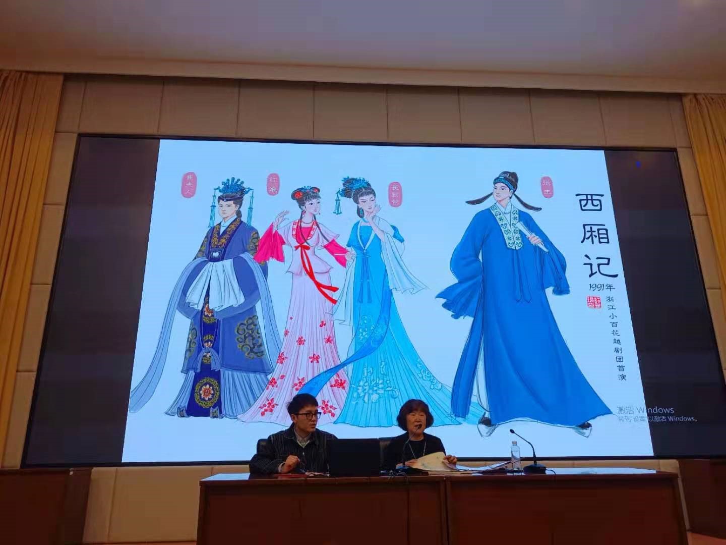 此次講座藍玲重點圍繞戲曲服裝設(shè)計的市場前景、設(shè)計人物服裝的過程和步驟以及服裝造型設(shè)計必須掌握的基本知識與技能展開,強調(diào)美術(shù)基礎(chǔ)、服裝結(jié)構(gòu)、服裝工藝、服裝材料、美學(xué)修養(yǎng)等對塑造舞臺人物服裝設(shè)計的重要性,并結(jié)合她設(shè)計戲劇服裝背后的故事,分享給師生們創(chuàng)作過程的經(jīng)驗和感悟。