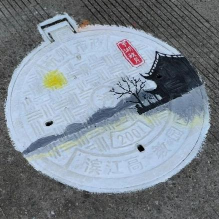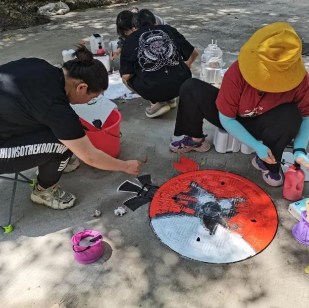 此次井蓋涂鴉是由我系19級(jí)、20級(jí)學(xué)生共15人所繪。活動(dòng)圍繞動(dòng)漫人物、環(huán)境保護(hù)、運(yùn)動(dòng)健康、西湖十景、二十四節(jié)氣五個(gè)主題進(jìn)行繪畫創(chuàng)作。 “為井蓋‘化妝’的過(guò)程并不算復(fù)雜,首先要將井蓋清洗干凈,用粉筆打個(gè)底稿,然后用丙烯顏料填色,晾曬一段時(shí)間后,最后用清漆刷一遍固色。”其中一位正蹲在地上的同學(xué)笑著說(shuō),“烈日下工作確實(shí)會(huì)有點(diǎn)辛苦,但一想到好的作品能讓老師和同學(xué)們享受美,就覺得這些都是值得的。”