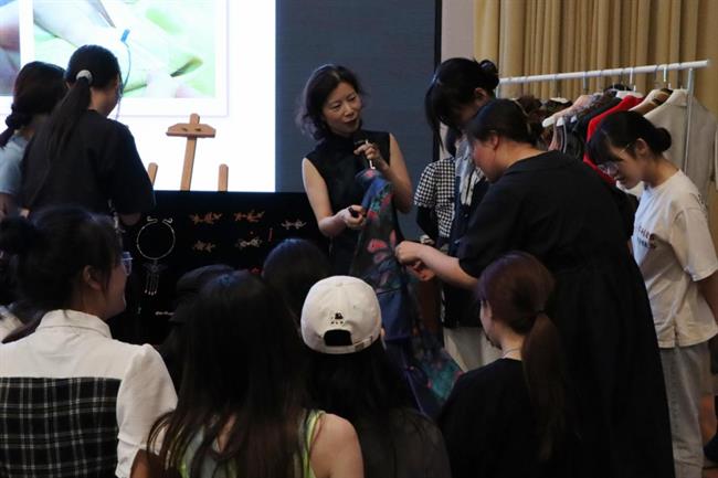 此次講座,鄭碧紅圍繞旗袍文化及歷史簡介、旗袍工藝細節(jié)、旗袍中的手工、旗袍欣賞四個方面展開,并讓同學(xué)們觀摩了她帶來的大量旗袍作品和盤扣樣品。鄭碧紅表示,服裝傳統(tǒng)制作技藝需要沉心靜氣,要耐心細心地打磨自己的專業(yè)技能,并充分展示我們的民族文化自信和工匠精神。通過此次活動,師生們深刻體會到旗袍傳統(tǒng)制作非遺文化的魅力。
