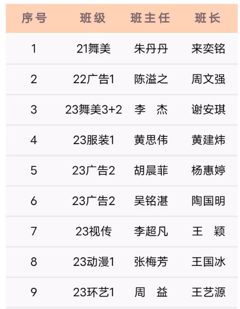 經(jīng)過檢查評(píng)比,本期推送9月、10月在課堂考勤、公寓考勤、校紀(jì)校規(guī)檢查中表現(xiàn)優(yōu)異的班級(jí),分別是: