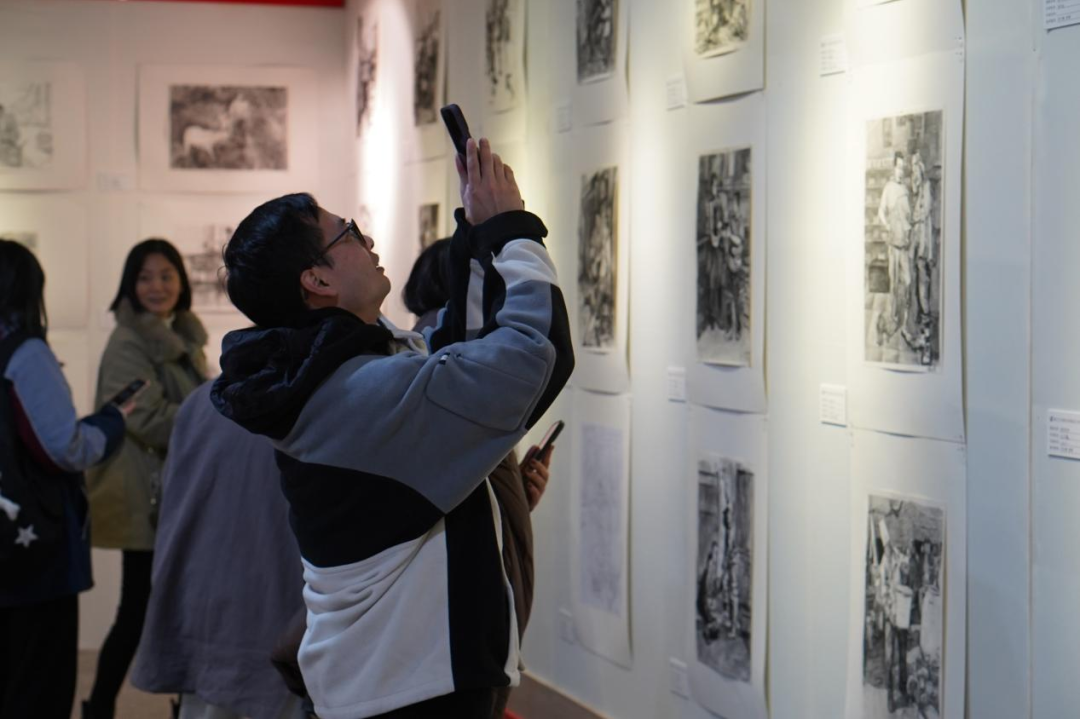 開幕式結(jié)束后,師生們共同觀看了作品展并進(jìn)行親切交流。