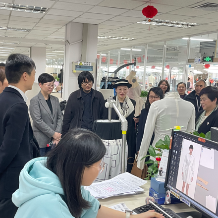 設(shè)計(jì)學(xué)院一行在達(dá)利(中國(guó))有限公司總經(jīng)理鄭路、人事行政總監(jiān)潘鳳姣、人事主管黃佳丹、招聘主管張麗的陪同下參觀了公司的生產(chǎn)車間、3D技術(shù)研發(fā)中心及成衣車間,參觀中鄭路介紹了公司的研發(fā)創(chuàng)新成果、生產(chǎn)運(yùn)行、產(chǎn)品優(yōu)勢(shì)、行業(yè)應(yīng)用等情況。通過(guò)講解,一行人了解到達(dá)利(中國(guó))始終貫徹綠色智造,科技創(chuàng)新的開(kāi)發(fā)生產(chǎn)理念,持續(xù)推進(jìn)產(chǎn)業(yè)數(shù)字化建設(shè),深化研發(fā)設(shè)計(jì)、生產(chǎn)制造、經(jīng)營(yíng)管理、市場(chǎng)服務(wù)等多環(huán)節(jié)的數(shù)字化應(yīng)用。