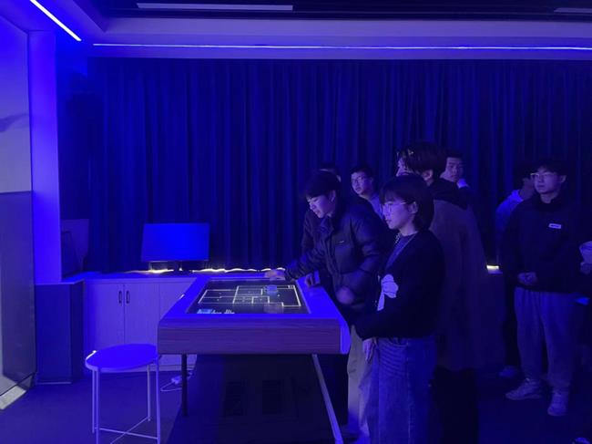 會后,一行人參觀了環(huán)境藝術(shù)設(shè)計專業(yè)的“云設(shè)計虛擬仿真數(shù)字化工作室”,對目前教學(xué)中所使用的全景VR眼鏡、OR物品識別臺、3D掃描設(shè)備進行了體驗與研討。