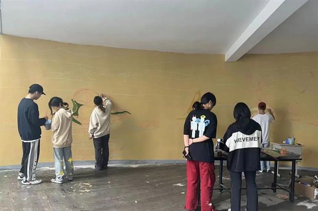 設計學子利用五一假期時間,積極投身于墻繪活動中,每一種顏色的調和,每一筆線條的繪制,看似輕松實則不易,迎著晨風,披著晚霞,表現(xiàn)出了極大的創(chuàng)作熱情,展現(xiàn)了堅韌不拔、無畏困難、吃苦耐勞、精益求精的專業(yè)素養(yǎng)和精神品質。