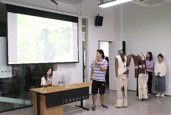 巴蕾對(duì)本次主題黨日活動(dòng)與學(xué)生專業(yè)能力比賽進(jìn)行介紹。比賽提倡學(xué)生從傳統(tǒng)文化出發(fā),提取設(shè)計(jì)元素結(jié)合當(dāng)代設(shè)計(jì),以小組為單位通過半命題設(shè)計(jì)和高低年級(jí)合作形式設(shè)計(jì)制作系列創(chuàng)意服裝,合作創(chuàng)作不僅促進(jìn)交叉年級(jí)間的相互學(xué)習(xí)與幫助,同時(shí)利于培養(yǎng)學(xué)生整體設(shè)計(jì)能力和團(tuán)隊(duì)協(xié)作能力。