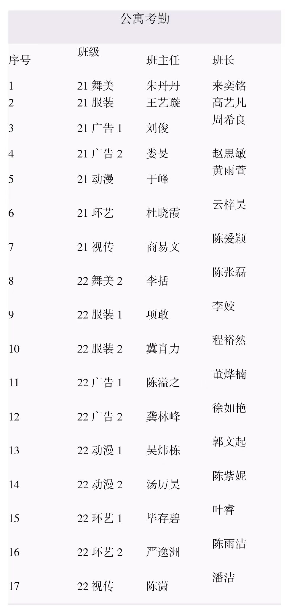 經(jīng)過檢查評(píng)比,本期推送4月、5月在課堂考勤、學(xué)風(fēng)檢查、公寓考勤、違規(guī)違紀(jì)檢查中表現(xiàn)優(yōu)異的班級(jí),分別是: