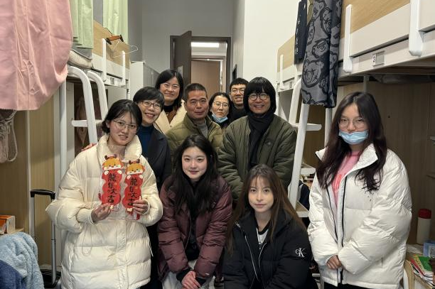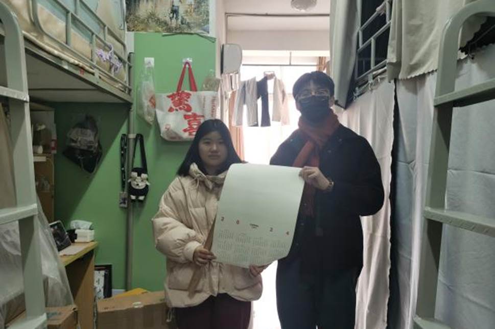 設計學院領導班子、全體班主任和輔導員走訪學生寢室,細心查看宿舍環(huán)境,關注每一位學生的返校情況,詢問學生的學習生活需求,為學生送上關懷。并叮囑學生認真完成勞動教育,保持整潔干凈的寢室衛(wèi)生環(huán)境。老師們還精心準備了富含龍年元素的春聯(lián)、掛件,寫滿了對學生的美好寄語,讓濃濃的年味與深深的人文關懷交織在一起。
