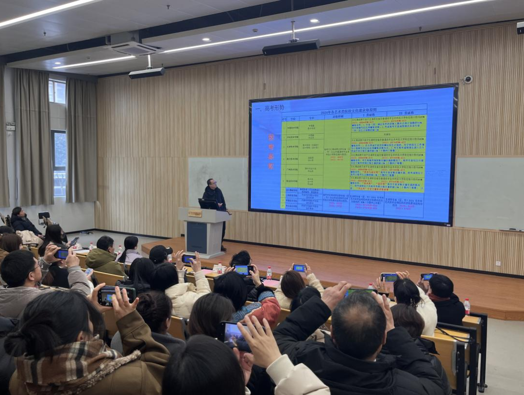 沈飛向各位家長(zhǎng)介紹了本學(xué)期的文化課教學(xué)安排,并以近幾年數(shù)據(jù)為參考,對(duì)各藝術(shù)類院校的文化課要求和錄取規(guī)則跟家長(zhǎng)做了分析和講解。