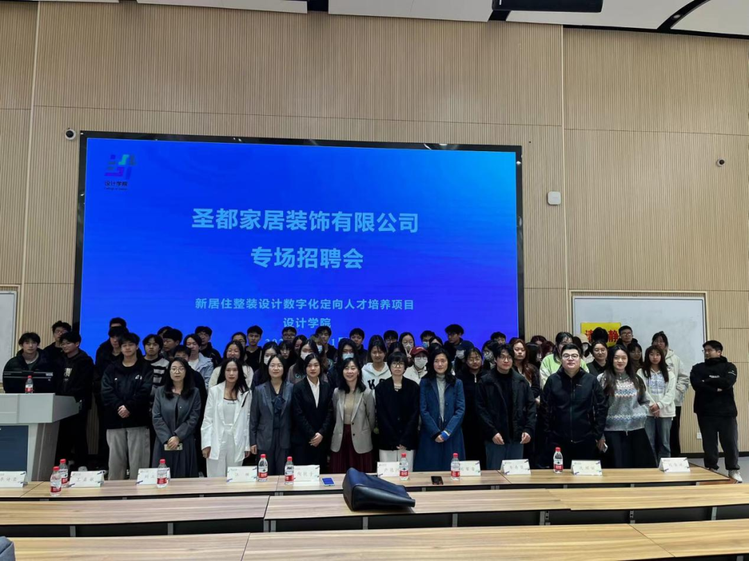 為促進畢業(yè)生更高質(zhì)量更充分就業(yè),進一步加強校企交流與合作,3月21日,設(shè)計學(xué)院環(huán)境藝術(shù)設(shè)計專業(yè)與圣都家居裝飾有限公司聯(lián)合舉辦專場招聘會。21級、22級環(huán)境藝術(shù)設(shè)計專業(yè)相關(guān)學(xué)生參加。