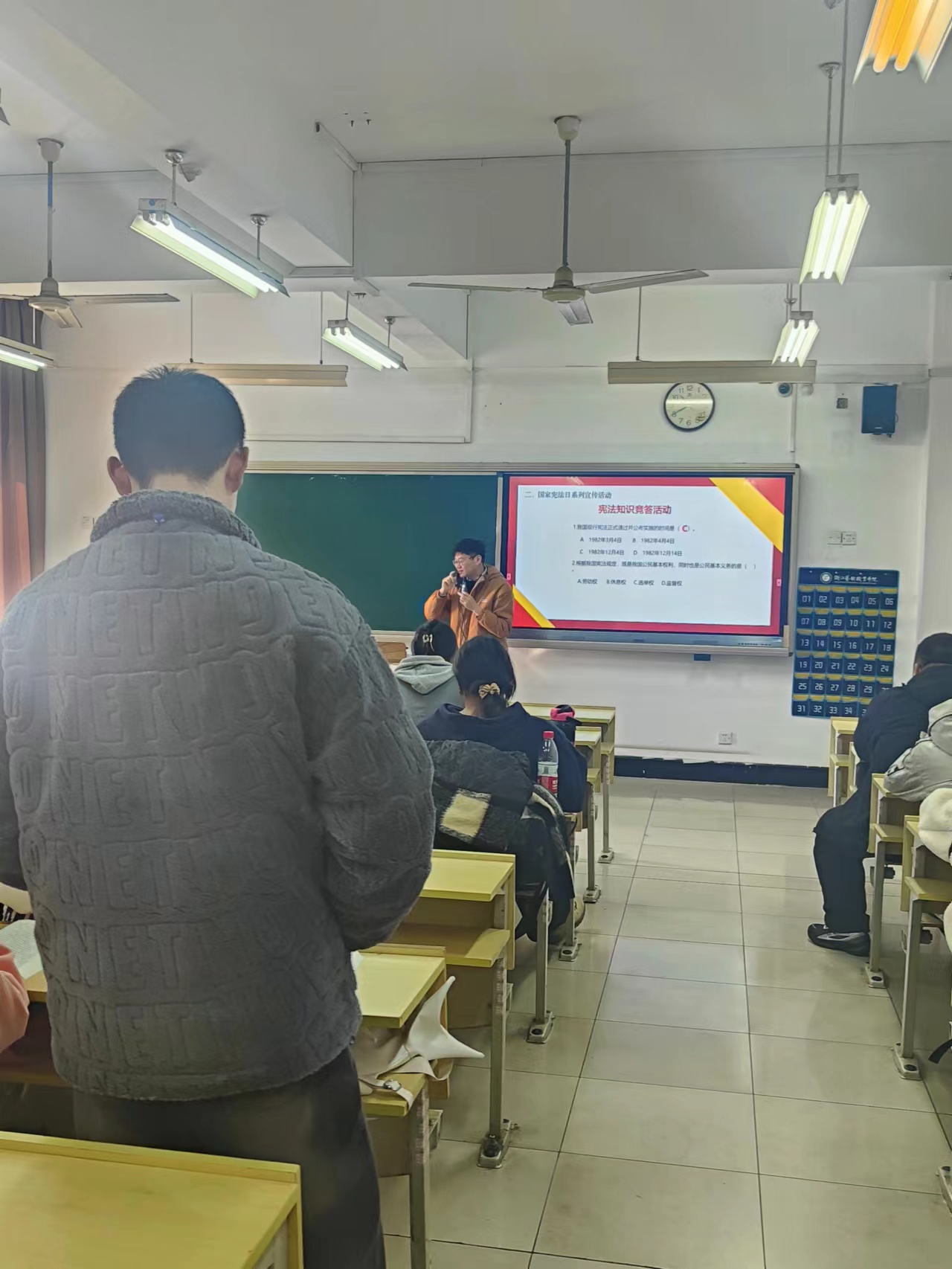該活動(dòng)由馬院基礎(chǔ)教研室組織,基礎(chǔ)教研室全體教師通過(guò)前期集體備課、制作統(tǒng)一課件、商討活動(dòng)環(huán)節(jié),最終在12月4日至12月7日的《思想道德與法治》課上有序展開(kāi),為全校近1800名同學(xué)帶來(lái)了一堂別開(kāi)生面的憲法宣傳課。