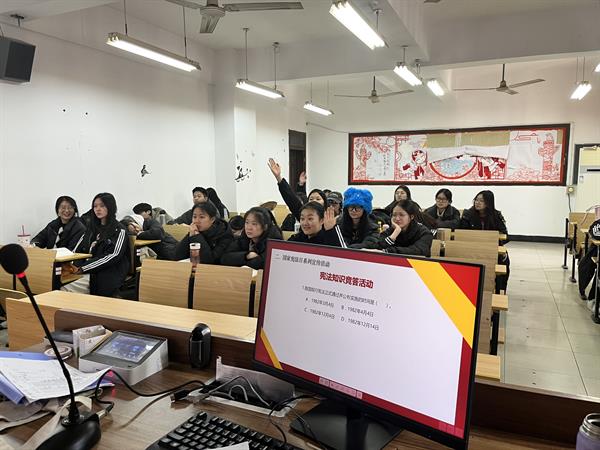憲法知識(shí)競(jìng)答活動(dòng)是通過(guò)競(jìng)賽的形式來(lái)激發(fā)同學(xué)們的學(xué)習(xí)興趣和參與熱情,各班教師各顯神通,采用“學(xué)習(xí)通”競(jìng)答、舉手競(jìng)答、起立競(jìng)答等方式引導(dǎo)各班同學(xué)積極參與,這一環(huán)節(jié)把課堂氣氛推向了高潮。