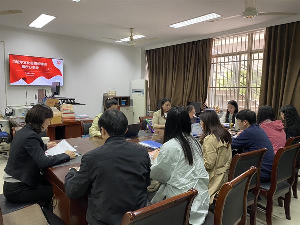 為深刻把握習(xí)近平文化思想的核心要義,持續(xù)加強(qiáng)對(duì)習(xí)近平文化思想深刻內(nèi)涵的學(xué)習(xí)、研究、闡釋,挖掘其豐富的思想政治教育資源,結(jié)合《浙江藝術(shù)職業(yè)學(xué)院“習(xí)近平文化思想在浙江實(shí)踐與探索”系列研究工作方案》文件要求,4月25日,馬克思主義學(xué)院開展習(xí)近平文化思想關(guān)鍵詞展示分享會(huì),學(xué)院領(lǐng)導(dǎo)班子及全體思政教師參會(huì)。