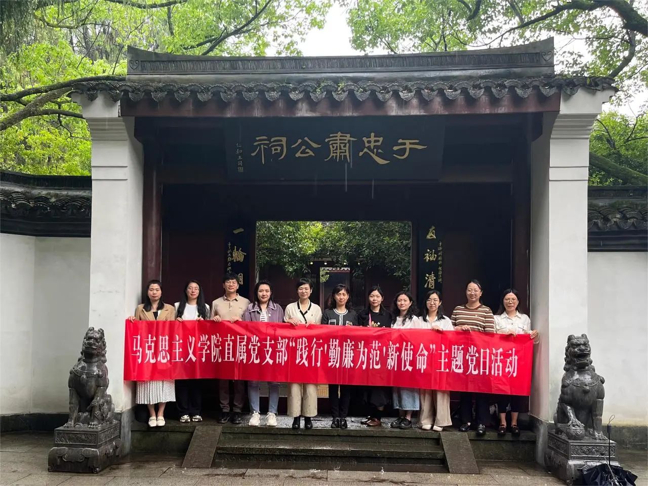 為深入學習貫徹習近平總書記關于黨紀學習教育的重要講話和重要指示精神,持續(xù)推進黨紀學習教育走深走實,強化廉潔文化建設,引導黨員老師學紀、知紀、明紀、守紀。5月31日,馬克思主義學院直屬黨支部組織全體黨員赴浙江省廉政文化教育基地——于謙祠,開展“踐行‘勤廉為范’新使命”主題黨日活動。