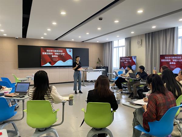 概論教研室主任孫彪依托《習(xí)近平新時(shí)代中國(guó)特色社會(huì)主義思想概論》課程,展開黨紀(jì)學(xué)習(xí)教育融入課程教學(xué)內(nèi)容的設(shè)計(jì)分享。他通過(guò)結(jié)合古今豐富的案例,深入挖掘其中的廉政文藝元素,闡述了黨紀(jì)與國(guó)家法治、與反腐倡廉、與全面從嚴(yán)治黨的關(guān)系,切實(shí)做到以小見大、見微知著。以“課前十分鐘”這種短而精的形式來(lái)提升學(xué)生對(duì)清廉文化的認(rèn)知度,真正讓黨紀(jì)教育入耳、入腦、入心。