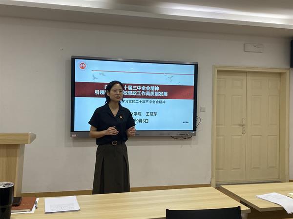 會上,馬克思主義學院直屬黨支部書記、院長王筱芽作題為《以黨的二十屆三中全會精神引領新時代高校思政工作高質量發(fā)展》的報告,領學了《中國共產黨第二十屆中央委員會第三次全體會議公報》《中共中央關于進一步全面深化改革 推進中國式現代化的決定》以及習近平總書記《關于〈中共中央關于進一步全面深化改革、推進中國式現代化的決定〉的說明》等重要文件,傳達了省委十五屆五次全會的會議精神,分享了學校黨委理論學習中心組專題學習會議上介紹和解讀黨的二十屆三中全會精神新聞發(fā)布會上就教育、科技、人才、創(chuàng)新等領域改革所作的重點介紹內容。
