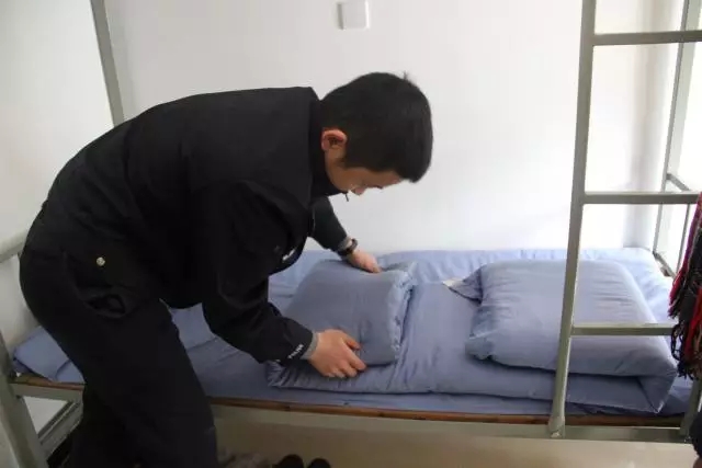 在警校同學(xué)們的帶領(lǐng)下,我們參觀了他們的學(xué)生宿舍。物品擺放整齊有序,被子疊的方方正正,空間一塵不染,使同學(xué)們禁不住贊嘆他們平時(shí)訓(xùn)練嚴(yán)格,整齊劃一。