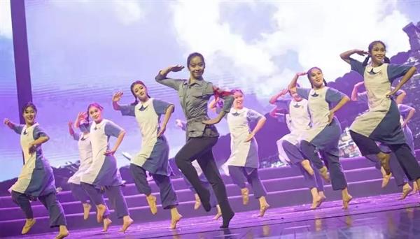 9月27日,浙江省濱江區(qū)委宣傳部慶祝新中國成立70周年文藝晚會(huì)上,我系16級舞蹈表演一貫制班表演《烽火搖籃》。